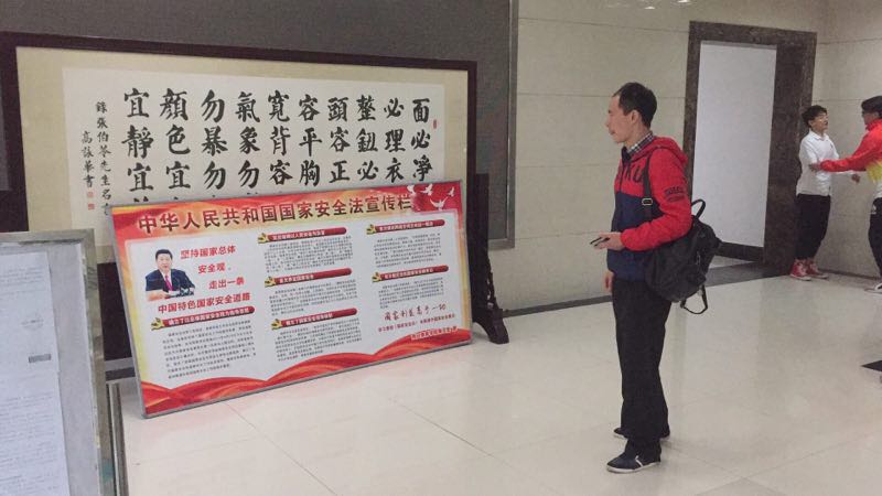 2201848日至16日,在行政楼、教学楼、食堂等学生密集处举办国家安全图片展活动,展板总计12块,图片展以《国家安全法》、《反恐怖主义法》、《反间谍法》为主要内容,同时发放宣传材料20余册,吸引众多师生驻足观看,反应热烈。