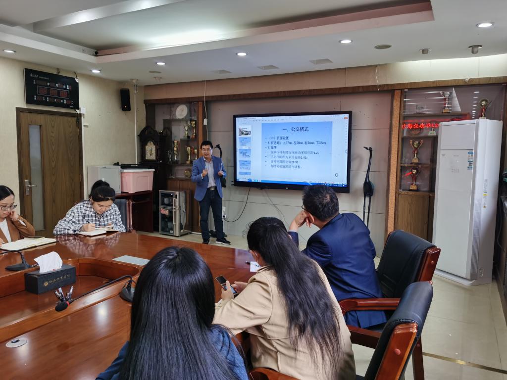 10月27日下午,2023年下半年办公能力培训在行政楼二楼大会议室举行,机关各部门文件起草人员、各二级学院办公室主任和教学秘书共计45人参加培训,会议由党委校长办公室组织。