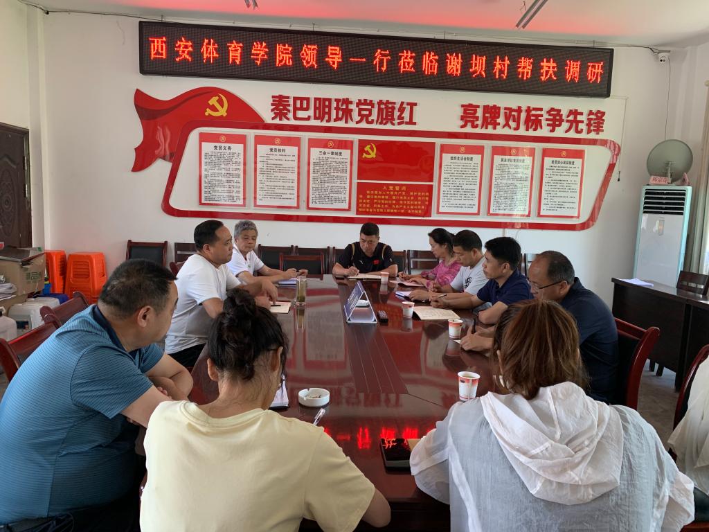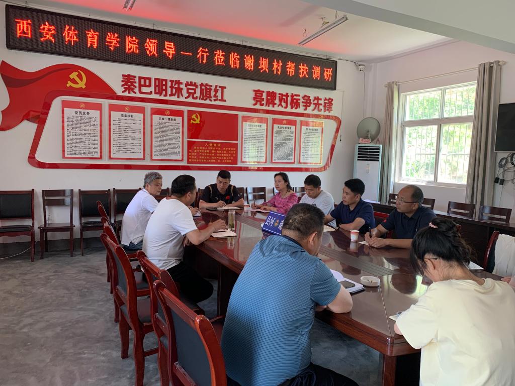 6月14日,我校党委校长办公室主任张军、足球学院院长席海龙、党委校长办公室副主任耿潇一行赴安康市县河镇谢坝村进行帮扶调研,与县河镇谢坝村支部书记等村干部开展座谈会。