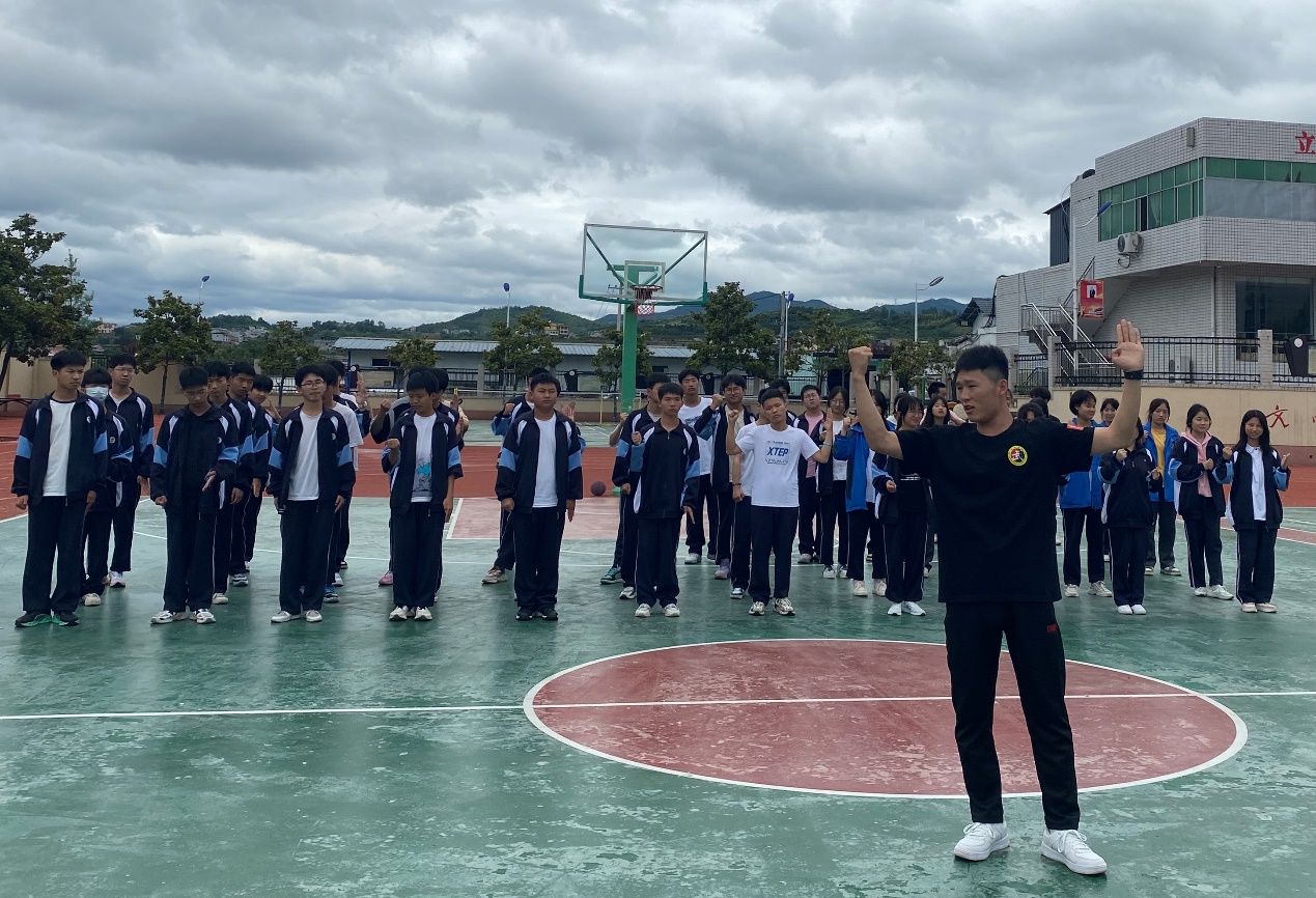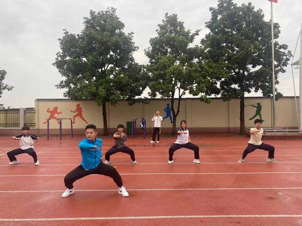(图为武术学院2020级张杰对高一班级进行武术指导)