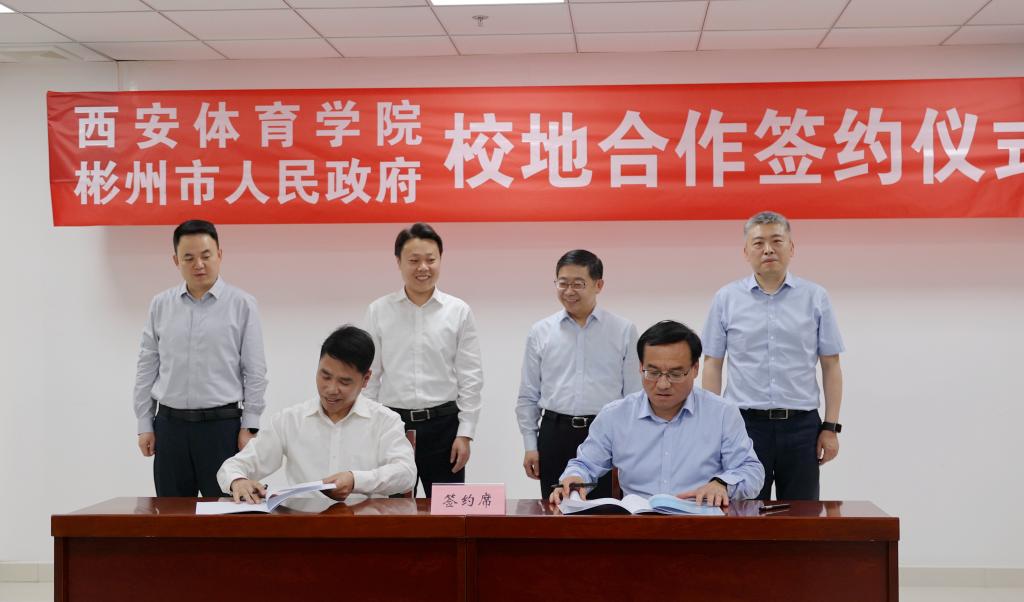 6月9日上午,校长刘子实带领党委校长办公室主任张军、教务处处长张葆欣、竞技体校校长张文军、体育教育学院院长马海涛、运动与健康科学学院院长刘涛等一行7人与彬州市人民政府签订校地合作协议。
