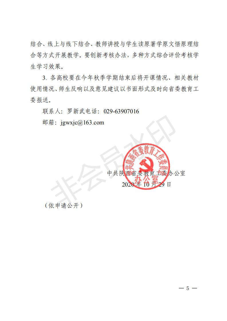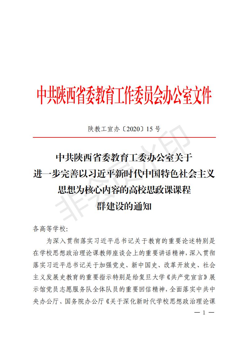 中共陕西省委教育工委办公室关于进一步完善以习近平新时代中国特色社会主义思想为核心内容的高校思政课课程群建设的通知-久久不卡区思想政治理论教学科研部网站