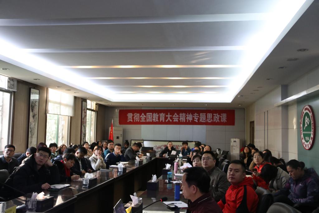 根据中共陕西省委高教工委《关于开展“全国教育大会精神”专题思政课示范巡讲的通知》文件精神及要求,为学习宣传贯彻全国教育大会精神,推进习近平新时代中国特色社会主义思想进教材、进课堂、进头脑,思政部同科研处特开展“全国教育大会”专题示范思政课。特邀到2017年度全国高校思想政治理论课教师影响力人物、西安理工大学博士生导师、马克思主义学院院长鲁宽民教授作专题示范思政课。
