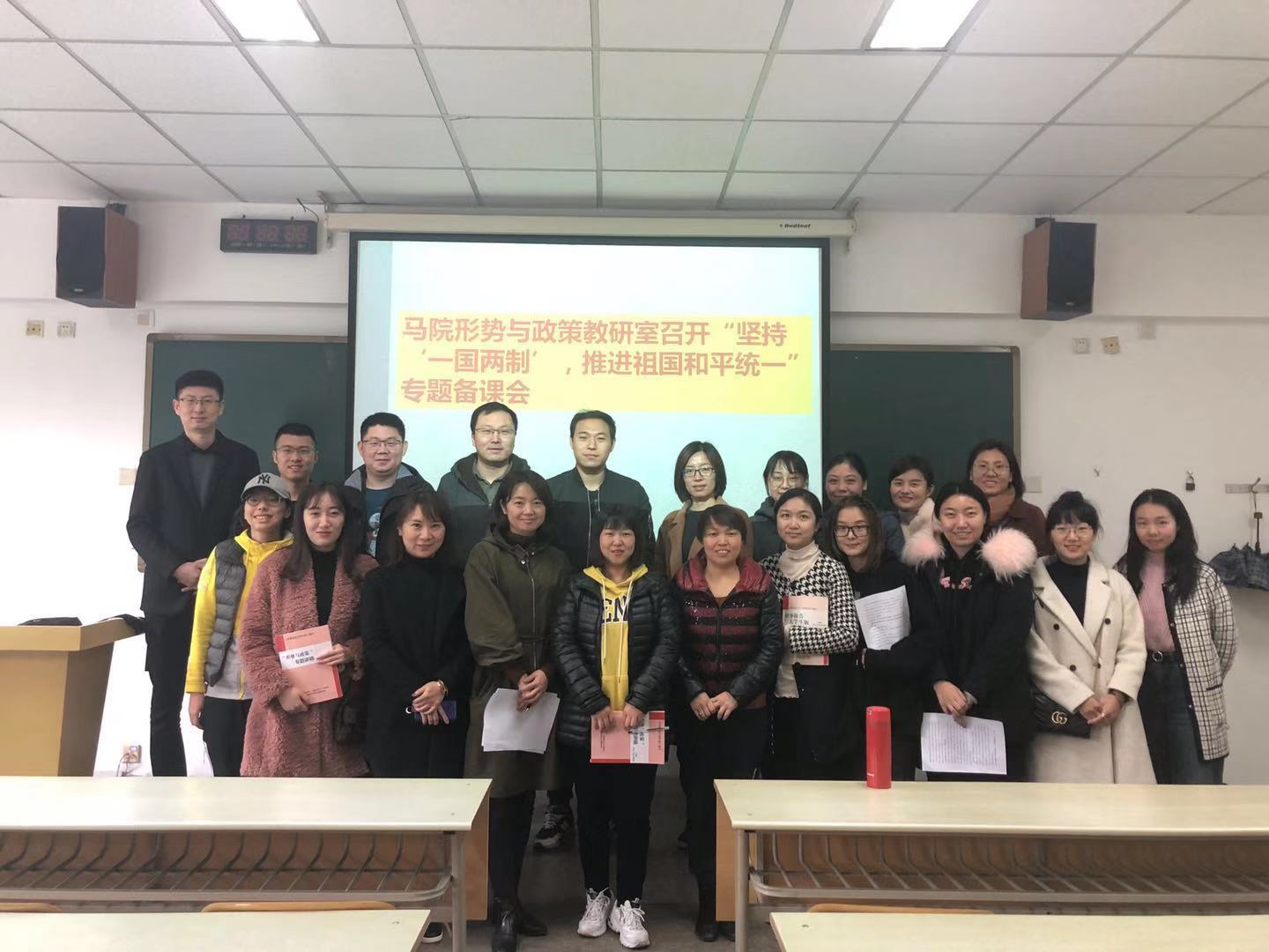 11月8日上午9:30,久久不卡区马院形势与政策教研室在教学楼305教室召开“坚持‘一国两制’,推进祖国和平统一”专题备课会,马克思主义学院院长秋实教授出席了会议,会议由形势与政策教研室主任刘小容主持。