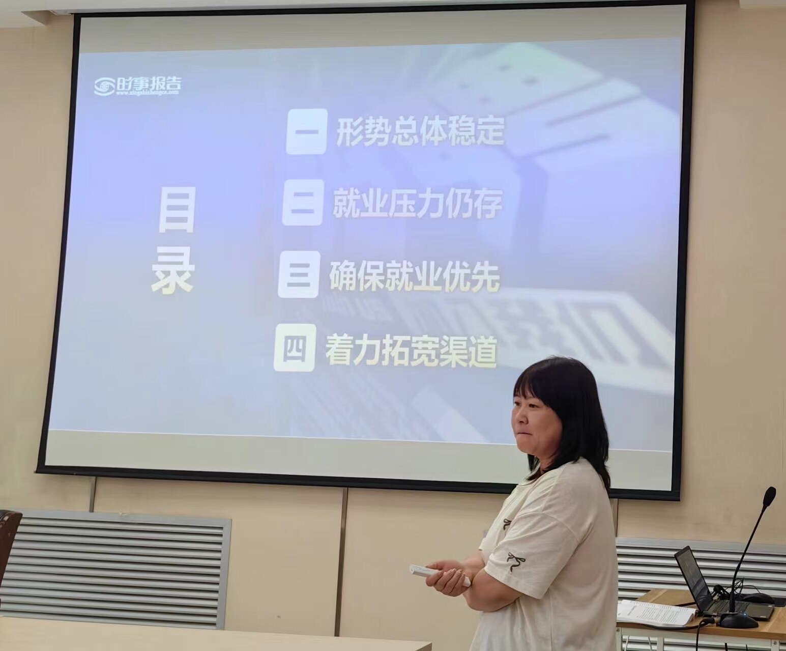随后,教研室王华老师、徐起老师分别就《当前就业形势与实施就业优先战略》《当前国际形势与中国原则立场》从教学导入、教学设计、内容安排、课后思考等方面进行了说课,在座各位老师就专题发表了研讨。大家一致认为,就业是最大的民生,一头连着老百姓的饭碗,一头连着经济社会发展,表示要认真备好课,把《当前就业形势与实施就业优先战略》专题讲好,从而引导学生正确认识当前就业形势,科学理性看待就业面临的问题和挑战,让其充分认识到经济长期向好带动就业,优先战略保障就业。《当前国际形势与中国原则立场》这一专题站位高,政治性强,要通过教学,让学生深刻认识到世界大变局加速演进,世界进入新的动荡变革期,中国始终站在历史正确的一边、时代进步的一边,把构建人类命运共同体的伟大事业推向新的高度,为维护世界和平、促进共同发展做出新的贡献。