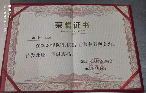 同时张宇还在湖北防汛抗洪期间担任洪线观察员与堤坝加固人员。为期一个月的洪线观察员,每日6-8小时身处雨中;为期一周的堤坝加固人员,双手布满水泡,填沙装袋,装填量约等于加固了一个洪水突破口。在参与家乡防汛抗洪时,他经历30多天的风吹雨打,成为家乡小镇水线观察员中的一人;他及时向驻点相关人员报告最新的水线;他与铁锹成为一周的战友,利用泥沙填装对破防隘口加固。