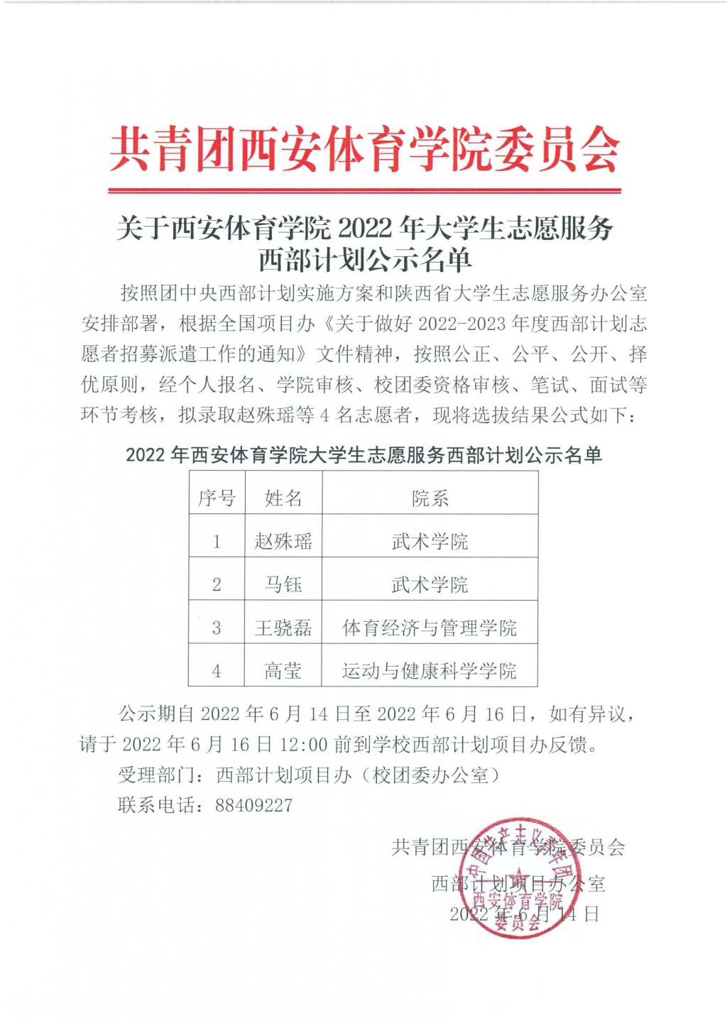 关于久久不卡区2022年大学生志愿服务西部计划公示名单