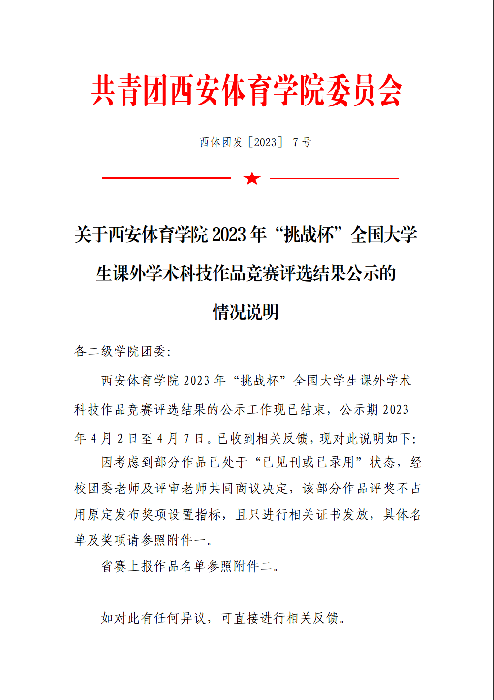 关于久久不卡区2023年“挑战杯”全国大学生课外学术科技作品竞赛评选结果公示的情况说明.pdf