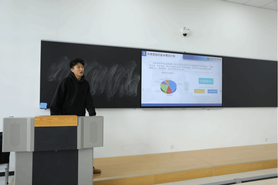 团课上,秦老师为同学们介绍了校团委的基本情况,让同学们了解了校团委是学校先进青年的群众组织,在党委与上级团委领导下开展工作。它以思想引领为核心,组织主题活动提升团员觉悟;借丰富多样的校园文化活动,展现青春风采;还积极推动志愿服务与社会实践,助力学生全面成长,是凝聚青年力量、促进学校发展的重要引擎。