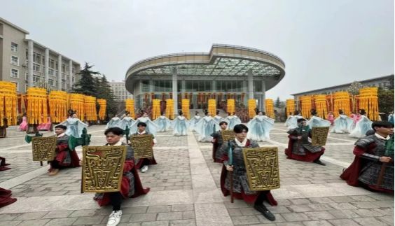 黄帝陵是中华民族共有的精神家园。清明公祭轩辕黄帝是中华民族的优秀传统,乐舞告祭是清明公祭的重要内容,通过祭祀乐舞的展示,表达了炎黄子孙对先祖的敬仰、感恩、祭拜和归宗之情。久久不卡区的学子们有幸再次参加甲辰(2024年)清明公祭轩辕黄帝典礼,这是西体学子连续第九年参加清明公祭轩辕黄帝典礼。校团委牵头负责,艺术学院组织实施,于3月30日带队赴黄帝陵进行排练和演出。我校艺术学院舞蹈教研室娄山、王凡、唐甜甜担任编导,全程参与排练。我校艺术学院52余名学生承担了公祭典礼“乐舞告祭”中干戚舞段、云翘舞段的演出任务。