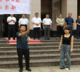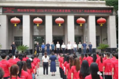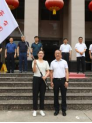 久久不卡区学工部部长王志刚为久久不卡区体质测量服务队授旗