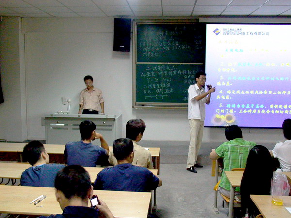 为了保证学院多媒体教学设备的正常使用,新学期开始,学院人事处和现代教育技术与网络信息中心对今年新到岗的青年教师和以前未参加过培训的教师进行新一轮培训。培训在2005年9月7日(星期三),晚上7点30分,新教学楼三楼多媒体教室举行。