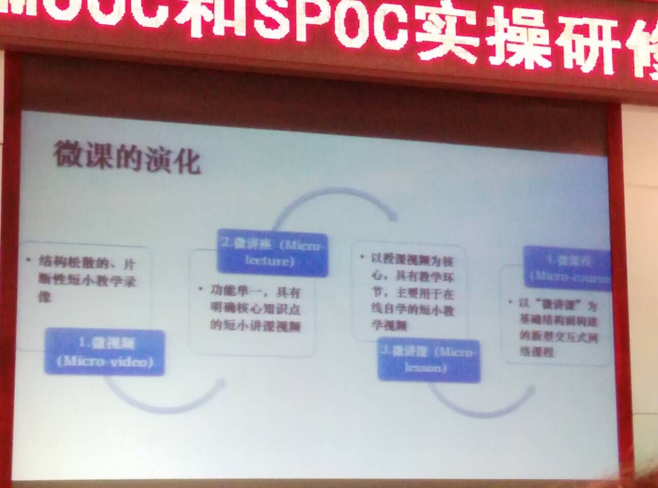 培训由北京大学教育学院的教育技术专业博士生导师,赵国栋教授主讲。主要从概念、技术方案等方面讲解了微课、慕课(MOOC)以及私播课(SPOC)的设计模型及常用工具,并现场体验了授课视频拍摄、编辑与发布环节。