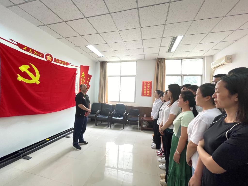 最后,全体党员面对党旗进行了庄严的宣誓,党员声声震彻的入党誓词代表了他们对党最忠诚的决心。大家纷纷表示,要坚守初心,牢记使命,以更加饱满的热情和不懈的动力投入到工作和学习之中。