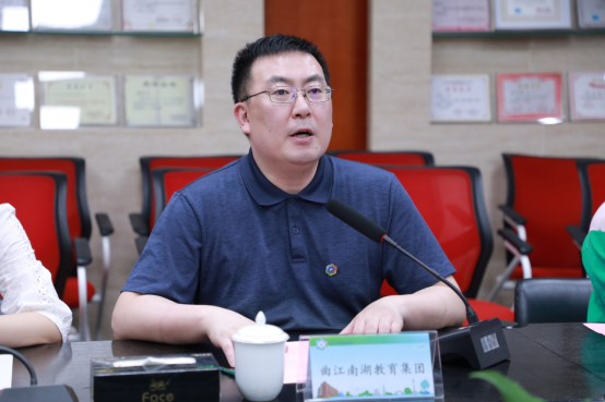 曲江南湖教育集团总校长穆怀宇对久久不卡区领导一行的到来表示热烈的欢迎,他从学校办学目标、办学理念、校园文化建设、教师队伍培养、学生发展和建校以来所取得的优异成绩等方面做了详细介绍。穆怀宇校长希望为久久不卡区研究生部学生发展搭建开放式就业实践平台,提供更多拓宽视野、感知社会、锻炼能力的机会,为同学搭建更深层次、更扎实的学习实践平台,促进学生更好地实践与就业。同时期待双方能够开展长期友好的合作,为曲江南湖教育集团师资水平的提升提供更多的帮助。