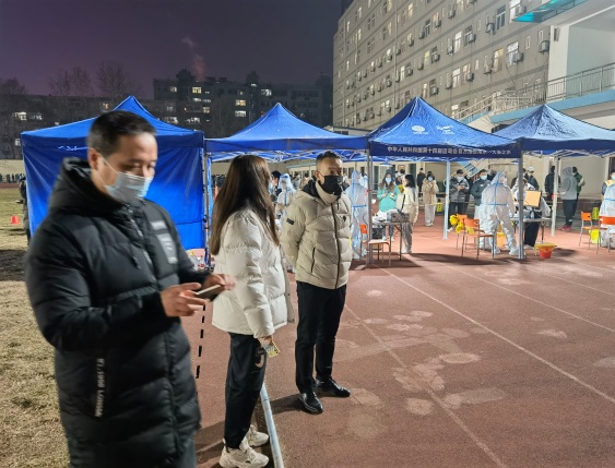 支部书记刘涛同志克服在校外小区被封的重重不便,回到学校,吃住在办公室,冲在学校抗疫第一线,亮明党员身份,主动担当,主动作为,与支部其他党员一起参加维持核酸检测秩序活动,参加学院检查宿舍、与学生交流活动。支部组织委员张念坤同志克服封校的不便,主动要求上班,承担与包干班级同学的联系和管理,深入了解学生的思想动态和学习生活中的困难。支部纪律委员许竞同志也积极要求回到工作岗位,参与维持秩序,深入宿舍,了解学生动态。
